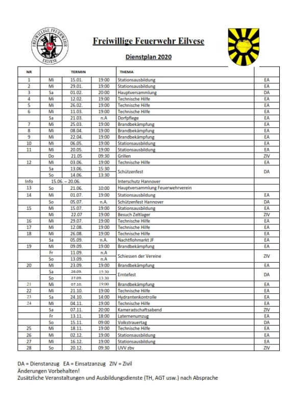 Hier findet ihr den Dienstplan unserer Einsatzabteilung. Unter der Rubrik Start im Menüpunkt Termine stehen zusätzlich alle weiteren Dienstpläne als PDF-Version zum Herunterladen bereit.