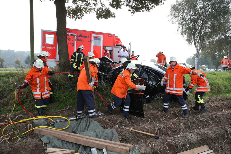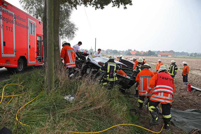 Ein PKW war frontal gegen einen Baum geprallt; der Fahrer wurde schwer verletzt. Erst unter Einsatz unserer und der hydraulischen Geräte der Feuerwehr Mandelsloh konnte die Person aus dem Fahrzeug gerettet und mit dem Rettungshubschrauber ins Krankenhaus gebracht werden.