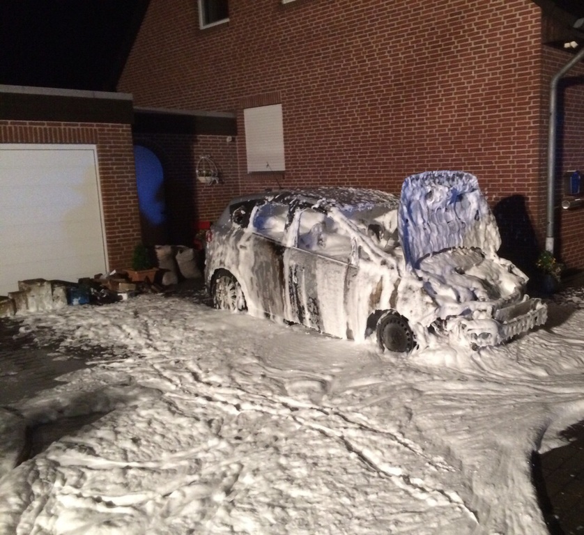 Das Fahrzeug ist auf einem Hof in der Eilveser Osterfeldstrasse aus bislang ungeklärter Ursache in Brand geraten. Dabei entstand hoher Sachschaden. Der Brand konnte nach Eintreffen der Einsatzkräfte durch den Einsatz von Schaummittel schnell unter Kontrolle gebracht und gelöscht werden.