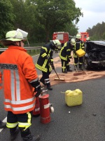 Nachdem wir die Batterien der Fahrzeuge abgeklemmt, die ausgelaufenen Betriebsstoffe mit Bindemittel abgestreut und die Fahrbahn von Wrackteilen befreit hatten, konnten wir einrücken.