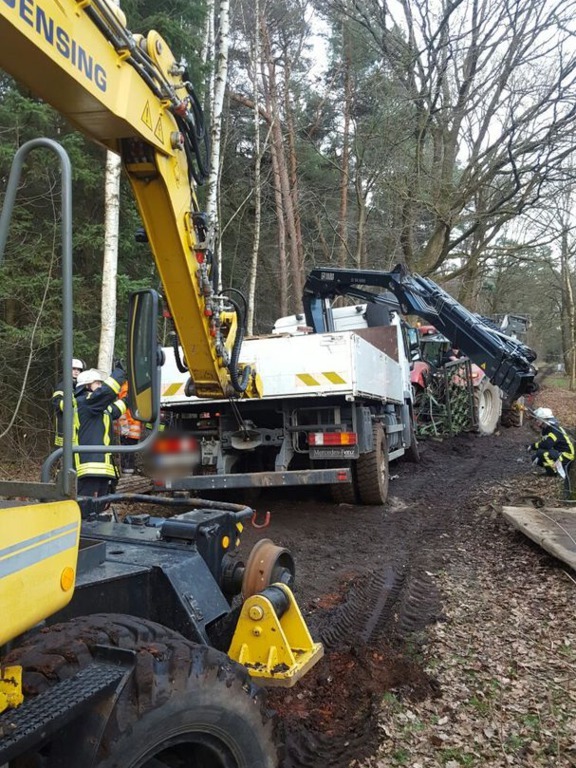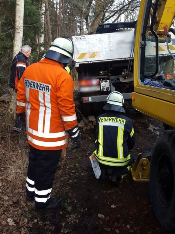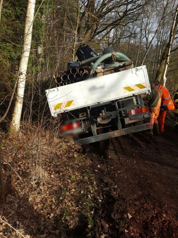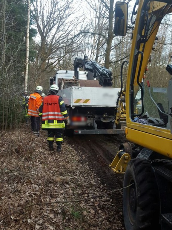 Am Mittwoch, den 22.03.2017 um 16.15 Uhr, wurden wir zur technischen Hilfeleistung gerufen. Ein LKW einer Brunnenbaufirma hatte sich im Tannenbruch festgefahren und drohte umzukippen.
