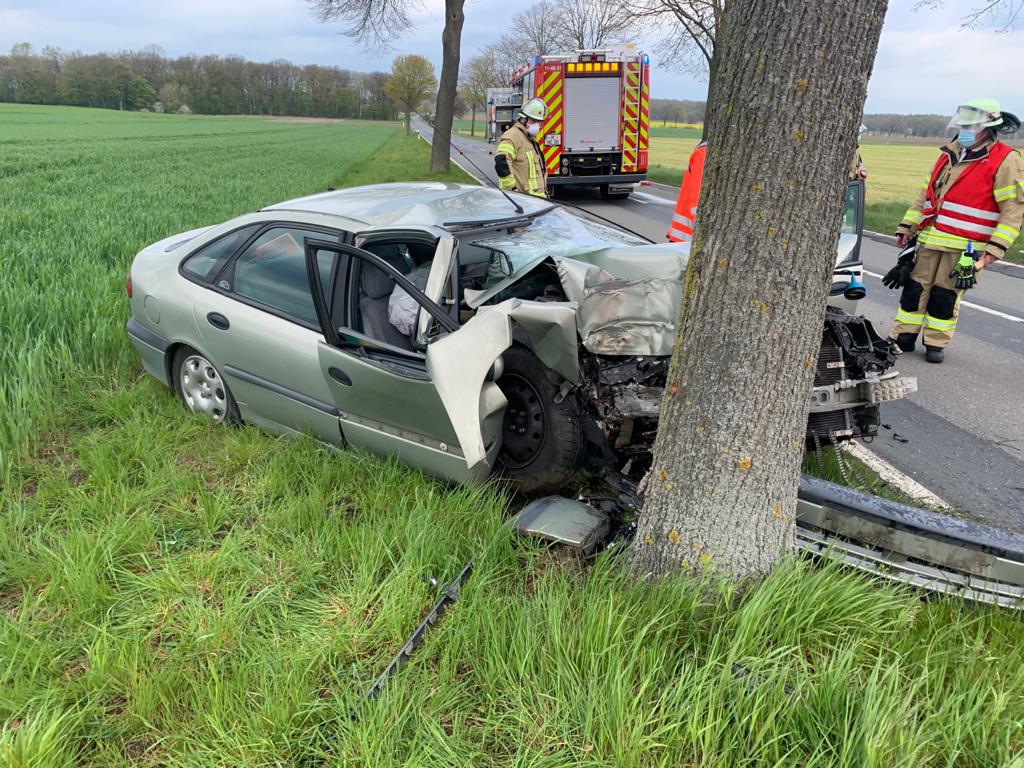 Am Montag, den 03.05.2021 um 12:00 Uhr, sind wir gemeinsam mit der Feuerwehr Neustadt zu einem schweren Verkersunfall auf der L192 zwischen Eilvese und Hagen gerufen worden. Ein PKW war gegen einen Baum geprallt.
