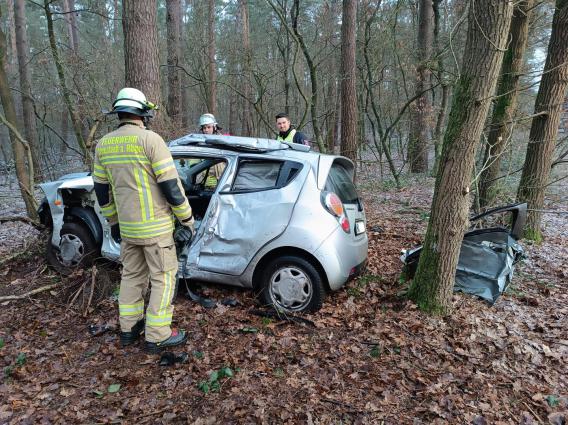 und in einem Waldstück neben der Fahrbahn zum Stehen gekommen. Die verletzte Fahrerin war zwar nicht im Fahrzeug eingeklemmt, jedoch eingeschlossen. Die Feuerwehr musste mit Hilfe des Rüstsatzes das