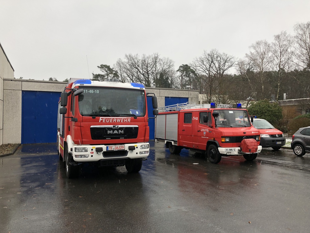 Die FUK teilte nach eine Begehung mit, dass eine Unterbringung in der momentanen Fahrzeughalle nicht möglich ist, da die Mindestanforderungen an die Stellplatzgrößen und die Verkehrswege nicht erfüllt werden.